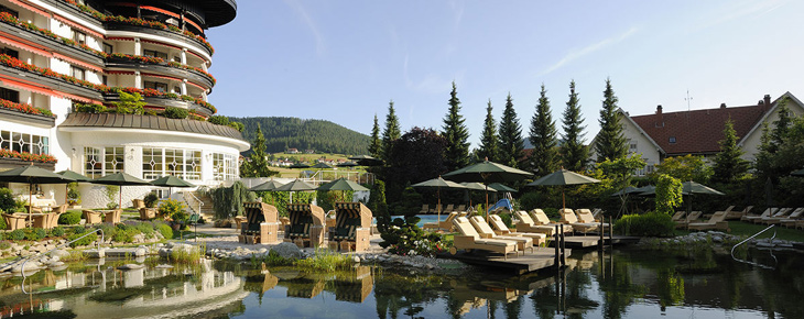 5M. Etangs magnifiquement aménagés, 9 piscines et jacuzzis, véritable galerie marchande (et désormais une bijouterie toute neuve) , grandes chambres de 26 à 120m2, tennis, espaces d’activités pour enfants et adolescents, magnifiques salles de restaurants. Difficile de trouver mieux…sans oublier le nouveau spa avec son espace de repos avec vue sur la forêt noire, magnifique !