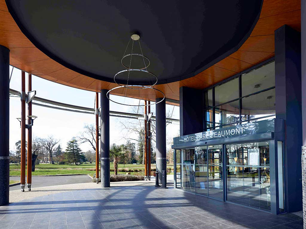 L’Hôtel du Parc Beaumont a ouvert en août 2004. Réalisé par le cabinet d’architectes local Camborde-Lamaison, il s’inspire de l’ancienne verrière du Palais d’Hiver du Parc, et se veut à la fois sobre et contemporain. Le projet est donc le fruit d’une réflexion profonde sur l’espace, la lumière et la végétation. Le bâtiment, de forme concave, épouse parfaitement l’une des allées du Parc. Original, il se cache entre séquoias, magnolias et cyprès centenaires. Les matériaux utilisés sont naturels et authentiques (parquets aux essences nobles, pierre d’Arudy, marbre des Pyrénées qui se patine doucement, etc…), les lignes sont sobres et parfois ponctuées d’oeuvres sculpturales des artistes Etienne Martin et Mayia Anderson. Les couleurs retenues, camaïeux de marron et de beige, s’unissent parfaitement aux tons de la végétation. Les larges baies vitrées donnent une place importante à la lumière, les balcons et les terrasses s’ouvrent quant à eux sur la nature environnante. Orienté plein sud, l’hôtel offre une extraordinaire perspective sur la chaîne pyrénéenne et ses sommets, ce qui lui vaut le titre « d’autre balcon des Pyrénées » en référence au Boulevard des Pyrénées et à son belvédère.