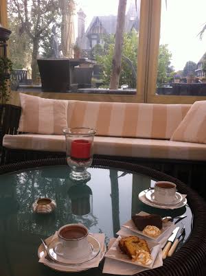 – pour ses « afternoon tea » (deux pâtisseries et une boisson, dehors sur la terrasse ou dans les salons)