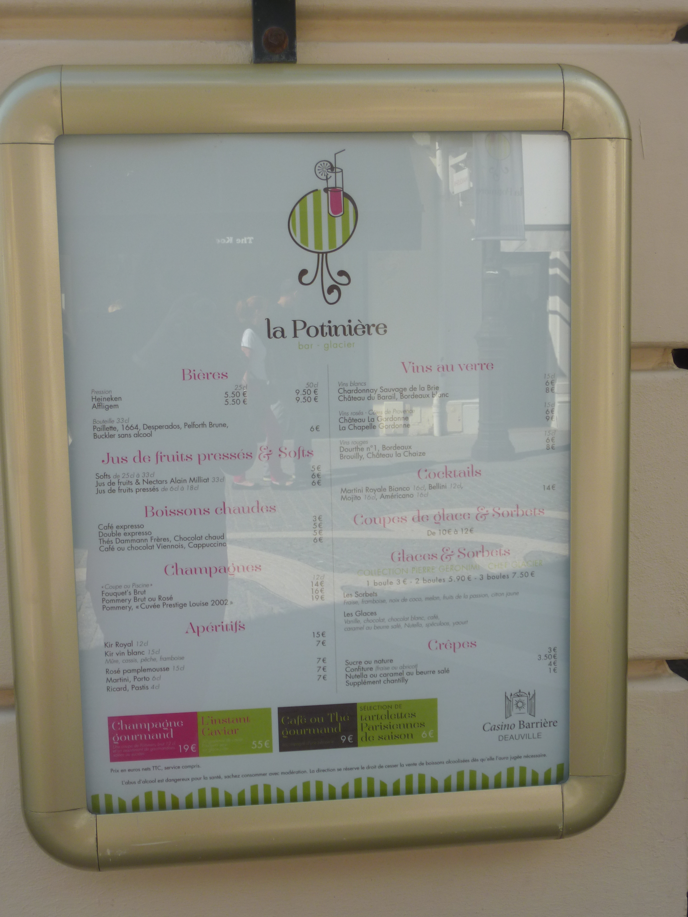 Bien entendu, partout on vous conseillera l’incontournable brasserie Miocque (qui semble cependant être beaucoup moins à la mode auparavant, si j’en crois la terrasse souvent vide, contrairement à celles de ses voisins, en ce mois de septembre 2014), pour ses délicieuses entrecôtes, ses tagliatelles au saumon, son impayable et pittoresque patron et son ambiance qui est un mélange entre un dessin de Kiraz et un film d’Audiard. Les murs sont ornés des photos du patron avec tous ses célèbres habitués, mais ne soyez pas impressionnés ou découragés par cette décoration ostentatoire…ni par les inscriptions « réservé » sur toutes les tables. La clientèle y est choisie avec parcimonie, alors pour éviter d’être refoulé (c’est- c’était- TOUJOURS complet le week end, surtout pendant le festival), si vous ne faites pas partie des habitués, je vous conseille de réserver mais chut, je ne vous ai rien dit…