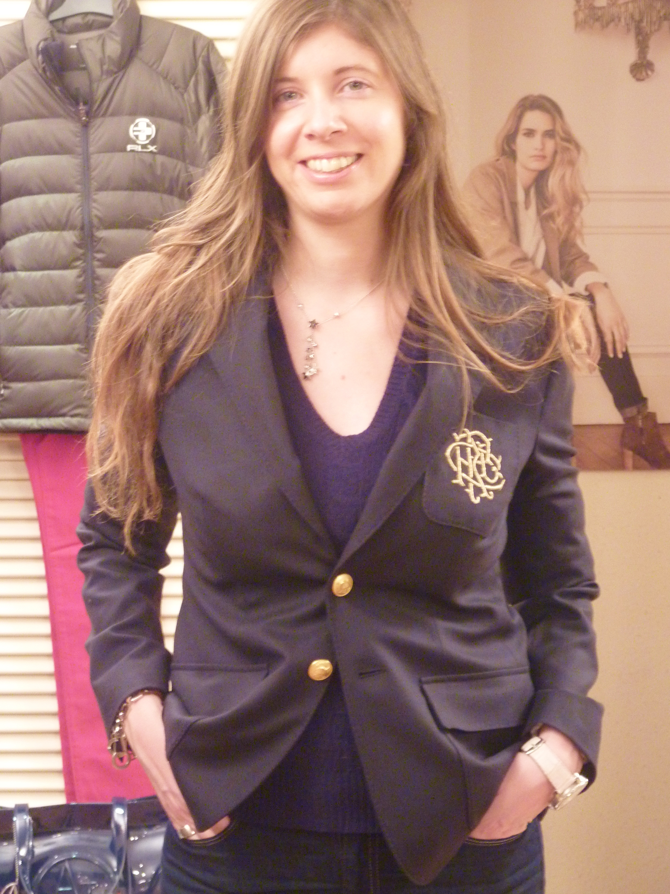 Veste: POLO de Ralph Lauren (qui conviendra mieux, par exemple, avec un chemisier de la même marque)
