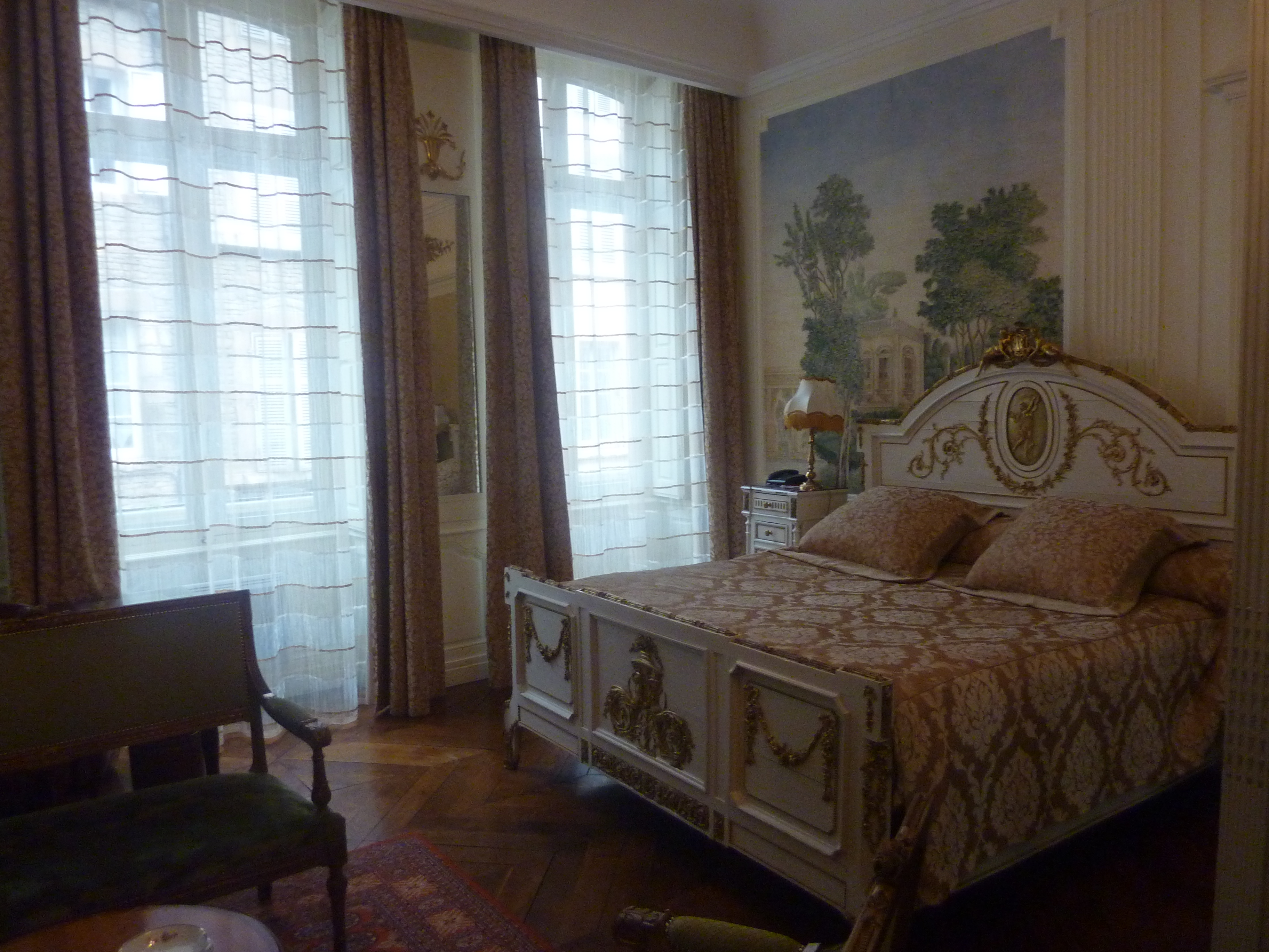 La chambre qui m’a été allouée, de catégorie 1er cru, est particulièrement…rose, grande, accueillante, avec une salle de bain également très grande et cosy (deux vasques, baignoire et douche) et surtout très bien équipée: deux peignoirs, chaussons, nombreux produits. La vue, sur une des cours intérieures (classées) de l’hôtel, est également particulièrement agréable et invite au repos et à la détente.