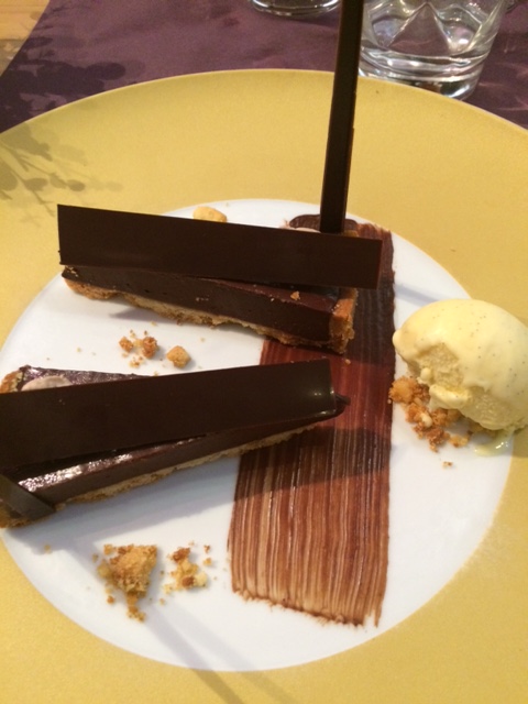 Si la qualité de la nourriture s’est améliorée –retrouvez la carte ici– (excellent cabillaud – Le dos de cabillaud, mousseline de pomme de terre au citron confit et aux algues-, amélioration du foie gras, très bonne tarte au chocolat –Tarte cacao rafraichie à la vanille de Madagascar-), le choix est parfois restreint (volonté de fournir des produits frais, ce qui est louable, me rétorquera-t-on) ou parfois curieux ou incongru (mets à faible coût) comme du …requin. Curieux aussi que le même dessert à quelques jours d’intervalle…ait diminué de moitié ! Et plus curieux encore de me l’offrir lorsque j’en ai fait la remarque. Reconnaissance d’une volonté peu judicieuse de faire des économies ?