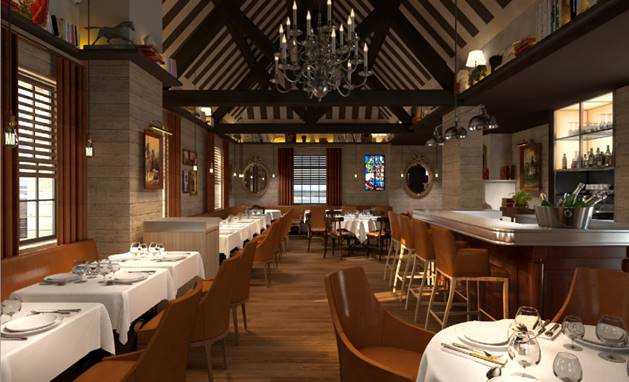 Un lieu magique entièrement rénové pour accueillir une décoration chaleureuse rappelant les clubs anglais, l’esprit hippique, avec du bois, des scènes équestres aux murs. Une cheminée, pièce centrale, qui a été conservée, un imposant bar en bois et zinc trouvera également sa place à l’entrée du restaurant.