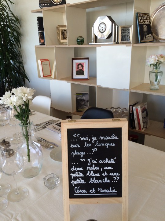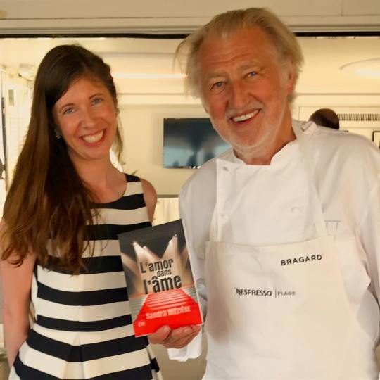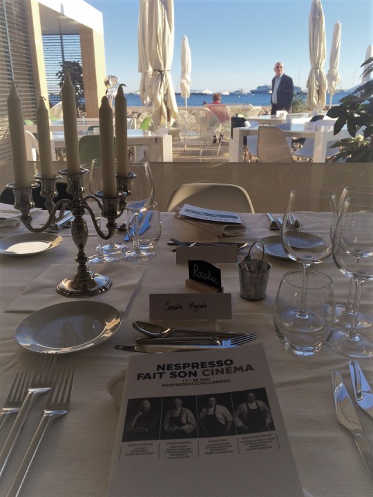 En attendant de vous livrer mon compte rendu complet et cinématographique du Festival de Cannes 2017 sur In the mood for cinema et In the mood for Cannes , je vous propose aujourd’hui mon récit d’un des moments magiques de ce festival : le dîner de Pierre Gagnaire sur la plage Nespresso dans le cadre de l’opération « Les chefs font leur cinéma », un dîner auquel j’ai eu le plaisir d’être conviée (encore un immense merci à Nespresso et à l’agence 14 septembre). Un dîner d’autant plus magique que mon premier roman (dont l’intrigue se déroule dans le cadre du Festival de Cannes et qui évoque Claude Sautet, mon cinéaste de prédilection) figurait par hasard parmi les livres sur le cinéma sélectionnés pour orner le décor du dîner qui avait donc pour thème Claude Sautet (choix du chef, passionné de cinéma et admirateur du cinéma du réalisateur de « Max et les ferrailleurs » ) et le Festival de Cannes, ce que j’ai donc découvert avec surprise et plaisir.