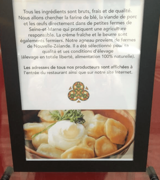 Ces ingrédients, les propriétaires de la Cantine des Tsars vont en effet les chercher principalement dans des petites fermes de Seine et Marne. Les photos des fermiers figurent d’ailleurs aux murs du restaurant.
