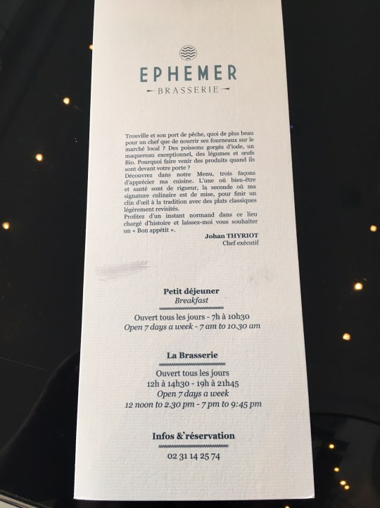 Ayant redécouvert les lieux car juste de passage à Deauville pour Normandes en tête et pour renouveler mon partenariat avec le CID (Centre International de Deauville) pour le prochain Festival du Cinéma Américain (je vous annonce ainsi en avant-première que des pass seront à nouveau à gagner pour le festival sur mes différents blogs dont mon blog consacré à Deauville In the mood for Deauville), je n’ai pas eu le temps de tester la brasserie et le tea-time des Cures Marines de Trouville, ce que je ferai sans aucun doute lors de mon prochain passage tant ce que j’en ai vu m’a mise en appétit.