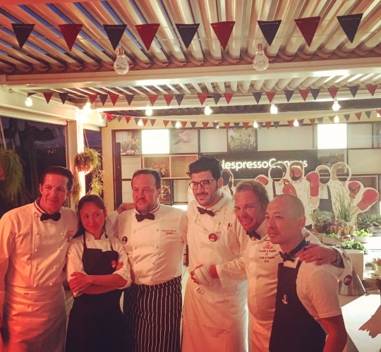 La plage Nespresso, ce sont aussi des dîners mémorables comme celui, inoubliable, de Pierre Gagnaire l’an passé (mon récit, ici). Un dîner d’autant plus magique (encore un immense merci à Nespresso et à l’agence 14 septembre) que mon premier roman, L’amor dans l’âme, (dont l’intrigue se déroule dans le cadre du Festival de Cannes et qui évoque Claude Sautet, mon cinéaste de prédilection) figurait par hasard parmi les livres sur le cinéma sélectionnés pour orner le décor du dîner qui avait donc pour thème Claude Sautet (choix du chef, passionné de cinéma et admirateur du cinéma du réalisateur de Max et les ferrailleurs ) et le Festival de Cannes, ce que j’ai donc découvert avec surprise et plaisir.