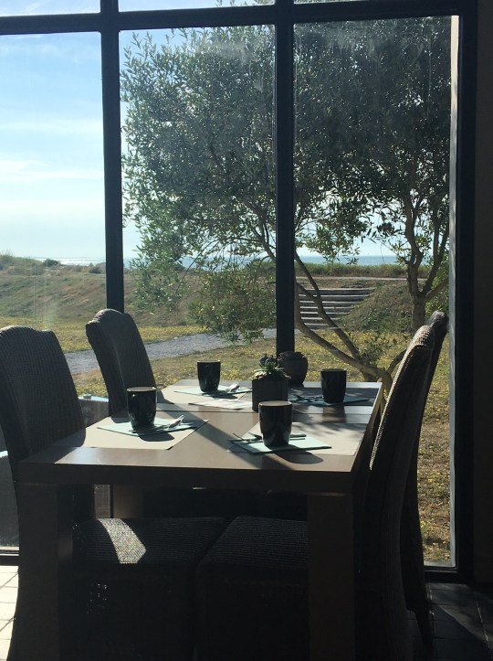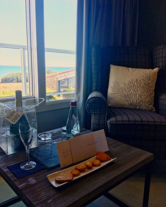 J’ai séjourné trois jours dans une suite confort vue océan (avec vue défiant toute concurrence sur l’océan dans une chambre particulièrement cosy, quel plaisir le matin d’ouvrir les volets et d’avoir l’impression d’avoir l’océan pour soi !) et deux jours dans une chambre premium côté vignes (dotée d’une belle terrasse) et j’avoue les avoir autant appréciées l’une que l’autre. Dans les deux cas, les chambres étaient chaleureuses et spacieuses et la vue était propice au repos et à la détente. Les couchers de soleil sur les vignes n’ont d’ailleurs rien à envier à ceux sur l’océan. Dans les deux cas : télévision écran plat, plateau de courtoisie, coffre-fort, WIFI, et la même attention portée à la literie haut de gamme et aux tisanes sommeil bio. En plus dans la suite confort océan : des huiles essentielles pour vous endormir. La superficie des chambres va de 23m2 à 56m2.