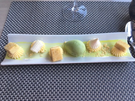 Venons-en donc au remarquable restaurant de l’hôtel qui, vraiment, vaut le déplacement jusqu’à l’île de Ré. Pendant les cinq jours qu’a duré mon séjour, j’avais la demi-pension et ce fut à chaque fois un régal. (Vous pouvez bien sûr aussi opter pour la carte). Les 2 fourchettes au Guide Michelin sont amplement méritées et une étoile Michelin ne serait nullement usurpée. Les produits sont frais et régionaux et comme définis sur le site officiel de l’hôtel « cuisinés avec un mélange unique de simplicité et d’audace ». Le chef Arnaud Thiry possède un talent indéniable pour sublimer les produits, réveiller et exciter vos papilles, pour vous embarquer dans un voyage gustatif enivrant et savoureux.