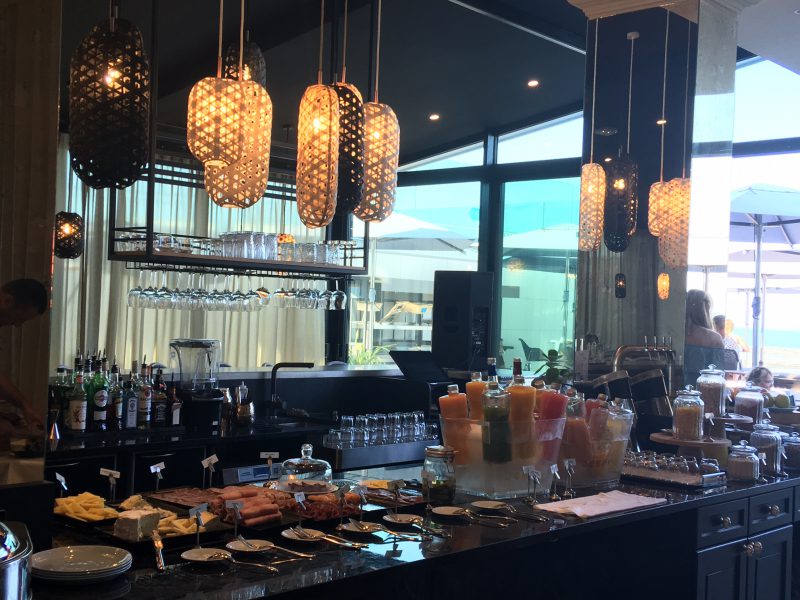 Comme je vous le disais plus haut, le nom de Pierre Gagnaire est pour moi un gage irréfutable de qualité. Vous pourrez ainsi y profiter de son restaurant Gaya Cuisine, « Pierre Gagnaire vous servira une cuisine innovante dérivée des spécialités traditionnelles françaises et préparée à partir de produits frais locaux » nous dit la brochure de l’hôtel. Le soir de mon séjour, le restaurant Le Gaya était complet (il est fortement recommandé de réserver), je me suis donc rabattue sur le snack qui le jouxte et dont la carte a été également élaborée par Pierre Gagnaire (la vue est tout aussi spectaculaire), on vous y propose notamment des plateaux de fruits de mer élaborés devant vous. Le lieu est idéal pour siroter des cocktails au son de la musique face au coucher de soleil et je vous recommande d’ores et déjà le lieu si vous cherchez un endroit rare pour passer la soirée. Le bar est également très chaleureux et très agréable.