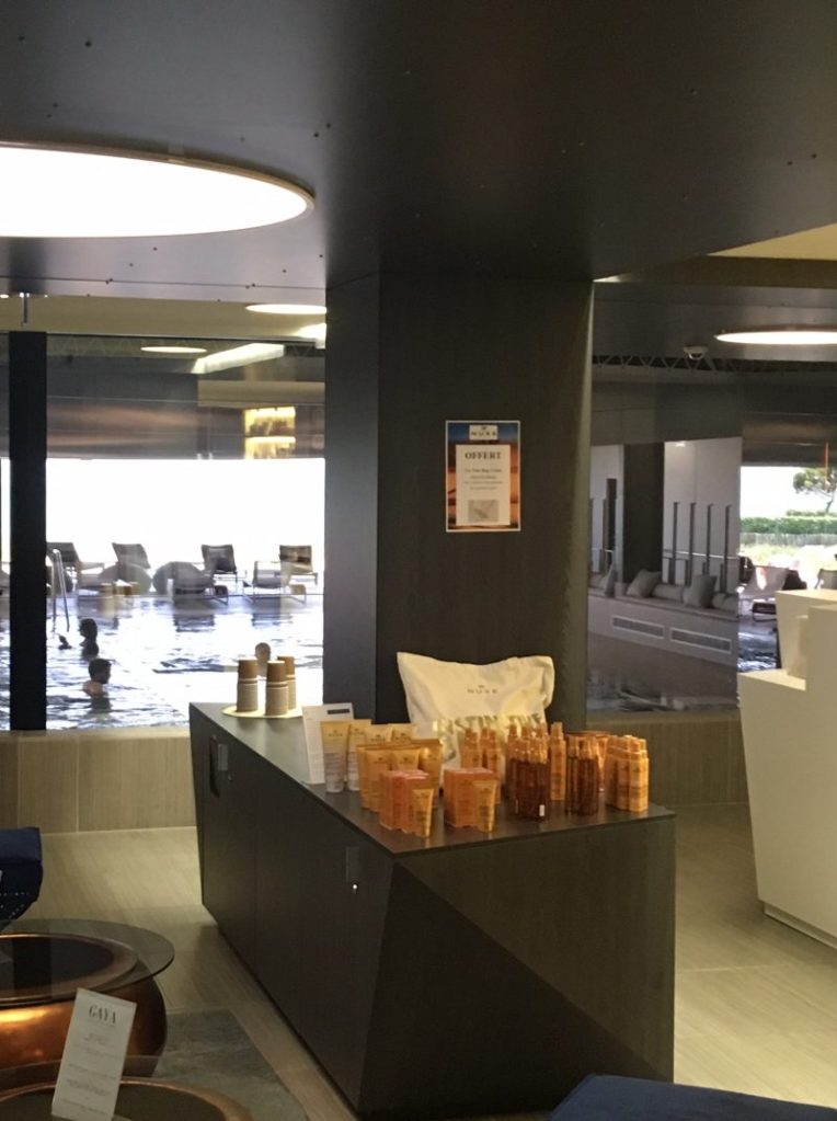 Le MGallery by Sofitel La Grande Terrasse propose une piscine intérieure chauffée, un spa Nuxe, un hammam et un sauna sur place. Au Spa Nuxe, vous disposerez d’une plus grande intimité qu’au Spa Marin de l’Ibis Styles avec en bonus un jacuzzi face à l’océan et ses îles. Sachez cependant que vous pourrez aussi profiter du magnifique Spa Marin de l’hôtel Ibis Styles situé en face (seule une route sépare les deux établissements, et si votre budget ne vous permet pas de loger au MGallery, je vous le recommande, le lieu est vraiment chaleureusement décoré et là aussi l’amabilité est au rendez-vous, vous pourrez aussi profiter de son restaurant, Le Carrelet, là non plus n’oubliez pas de réserver, seul bémol, la route sépare l’hôtel du front de mer contrairement au MGallery by Sofitel situé directement sur le front de mer), toutes les piscines et les soins utilisent de l’eau de mer. Le Spa marin est environ 4 fois plus grand que le Spa Nuxe (33 cabines et 4 piscines).