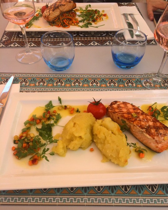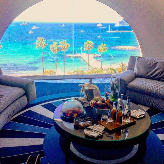 Le choix de chambres et suites est tellement pléthorique qu’il faudrait être particulièrement difficile pour ne pas trouver son bonheur. Dans la suite Mélodie précédemment évoquée, dans laquelle fut tourné le film de Verneuil en 1963, vous pourrez profiter de la terrasse panoramique sur la Méditerranée mais aussi du service d’un Majordome dédié et d’un accueil Top VIP. Tels Jean Gabin et Alain Delon dont les portraits surmontent la tête de lit, vous serez ainsi la star de la Suite Mélodie. La superbe fenêtre en demi-lune qui s’étend du sol au plafond, la salle de bain de marbre rose et l’accès illimité au Centre de remise en forme et à l’Espace sensoriel avec sauna, hammam et douche expérience du Spa Diane Barrière sublimeront votre séjour. Un bijou de 150 m² lové sous la coupole Est. Comme en témoigne ma photo ci-dessous, la vue y est réellement à couper le souffle et même délicieusement vertigineuse !