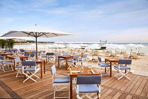 La carte du restaurant est signée par Christian Sinicropi, le Chef exécutif de l’Hôtel Martinez et du restaurant La Palme d’Or, deux étoiles Michelin. La cuisine de La Plage du Martinez joue l’originalité en proposant une subtile combinaison culinaire mélangeant les saveurs de la Méditerranée, de l’Asie et des Tropiques.