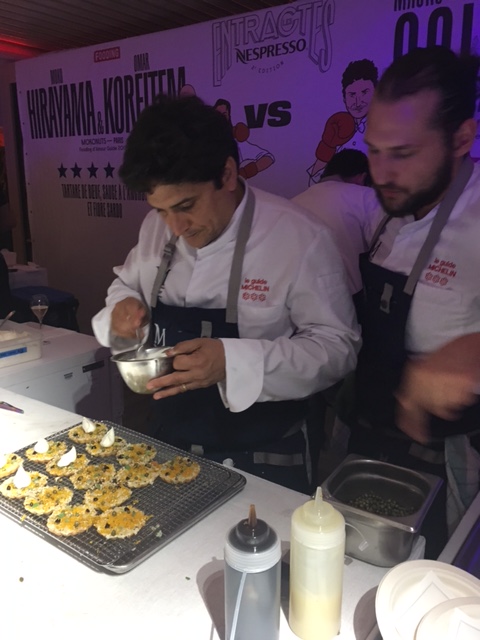 Au mois de mai dernier, dans le cadre du Festival de Cannes avait lieu une battle des guides Le Fooding et Michelin, en partenariat avec Nespresso, une battle à laquelle participait notamment Mauro Colagreco.