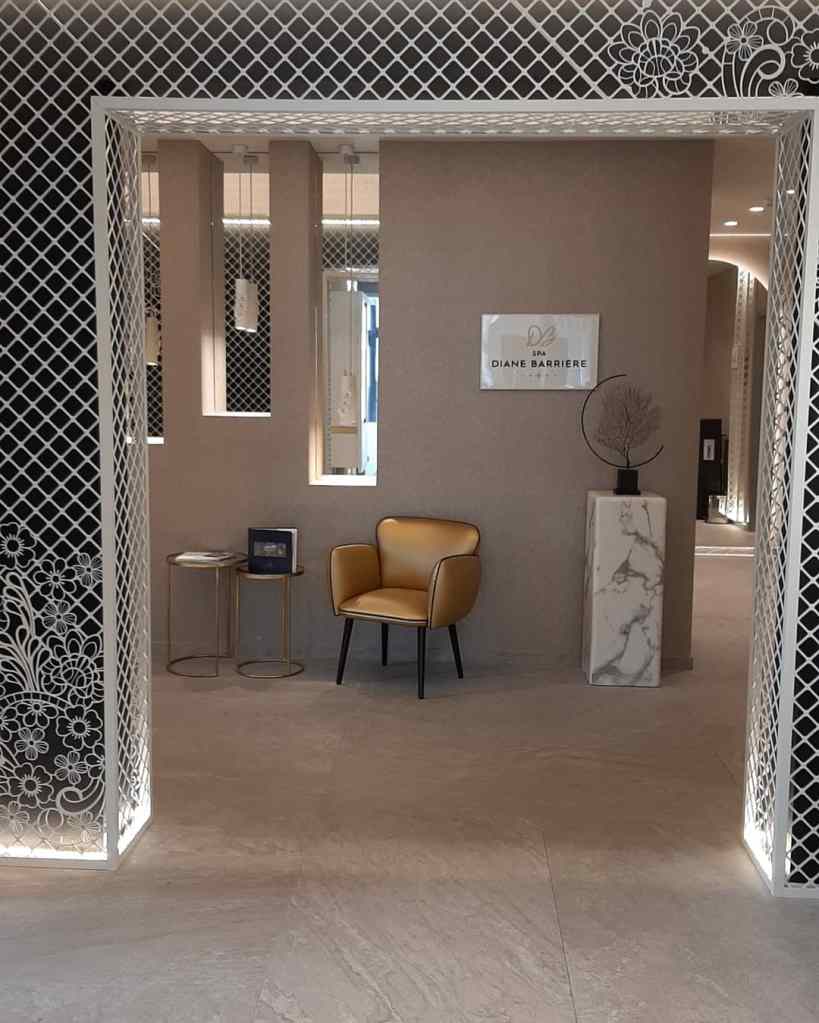 La création du Spa Diane Barrière a été confiée à la décoratrice Chantal Peyrat. Moins ostentatoire que le rouge de Jacques Garcia, autrefois indissociable des hôtels Barrière, ce sont ici le bleu et les tons sablés qui sont à l’honneur, des couleurs océanes synonymes d’élégance mais aussi d’authenticité. Vous y trouverez aussi les verts intenses qui s’inspirent de la forêt de Brocéliande. Alexandre Danan est également intervenu sur le Normandy et le Fouquet’s Cannes, et a signé la métamorphose du lobby du Majestic. Si c’est bel et bien un bâtiment mythique, jamais le luxe n’est empesé ou l’Histoire écrasante. La discrétion est le maître mot et non l’ostentation dans ce 5 étoiles membre des prestigieux Leading Hotels of The World, comme le Majestic de Cannes ou le Royal de Deauville.
