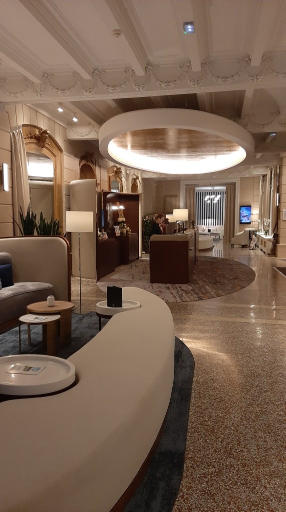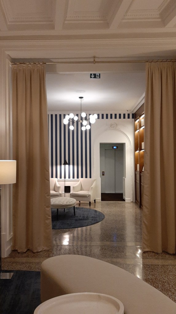 Du lobby aux bar et restaurant, des chambres aux suites, de l’espace fitness aux salons de réception, c’est la totalité du Grand Hôtel qui a été magnifiquement et intelligemment repensée et rajeunie par le décorateur Alexandre Danan. J’ai tout particulièrement apprécié la splendide bibliothèque qui me fait songer au cocon d’un paquebot de luxe et qui est un hommage aux créateurs qui traversèrent les lieux mais aussi une invitation à la lecture, à la rêverie, au voyage, d’ailleurs à l’image de tout l’établissement.