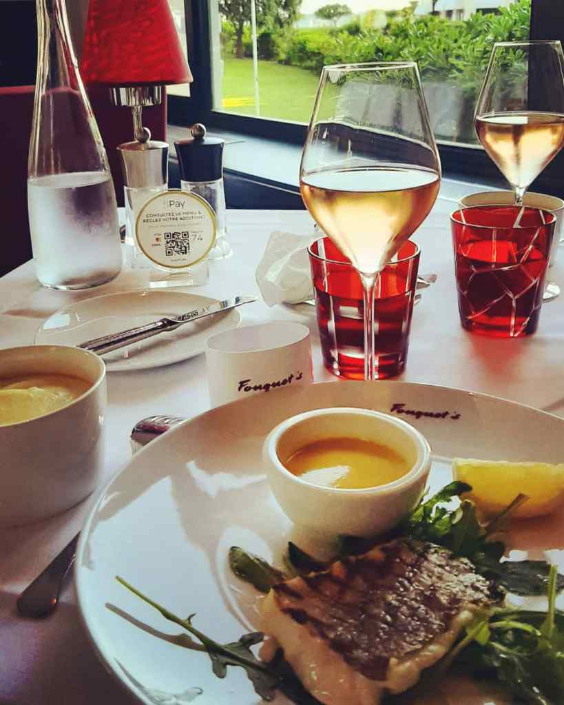 Vous pourrez aussi dîner au Fouquet’s Barrière qui, après Paris et Cannes, s’est donc aussi désormais installé à La Baule. Les habitués de l’établissement cannois et parisien y retrouveront le décor « brasserie chic » chaleureux et élégant, caractéristique des établissements Fouquet’s, à l’atmosphère si cinématographique. Vous y retrouverez l’accueil affable et les produits de qualité et une carte élaborée en collaboration Pierre Gagnaire qui vaut vraiment le détour, mise en scène par le chef Mikael Amisse, de quoi satisfaire les papilles les plus versatiles et exigeantes dans un cadre particulièrement propice à la dégustation et à la détente avec vue sur le parc et sur la mer que les grandes baies vitrées vous permettront d’admirer allègrement. L’accueil et le service y sont là aussi exemplaires comme j’ai pu à nouveau le constater lors de ce séjour.