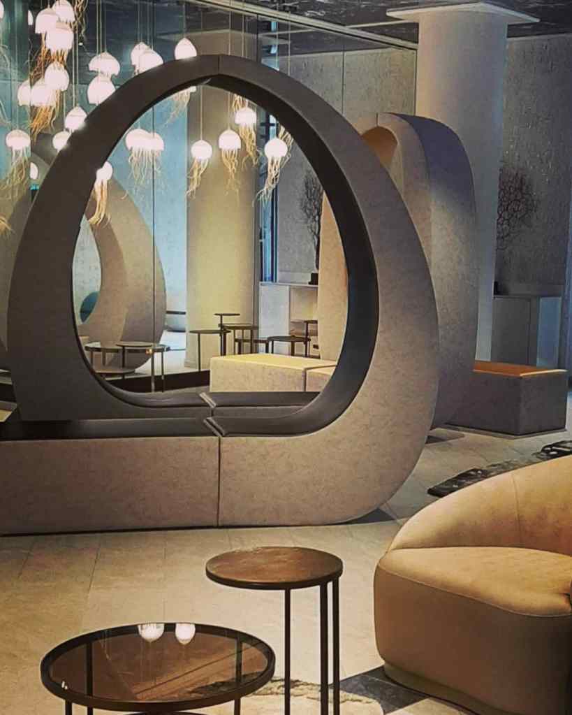 Pour résumer, une escale et une évasion physiques et mentales salutaire, havre de sérénité et de luxe dans lequel vous pourrez notamment : vivre une odyssée intérieure depuis un bassin de flottaison, méditer autour du thème abyssal des méduses, révéler votre beauté différemment avec le Medical Spa by Clinique des Champs Elysée ou encore sculpter votre silhouette grâce au training fitness connecté. La mer est au bien sûr au cœur de tous ces programmes. Bassin d’eau de mer, parcours marin, bassin de flottaison, massage sous affusions, enveloppement aux eaux mères de Guérande…une expérience unique de bien-être vous attend. Le tout dans un cadre chaleureux où vous serez accueillis « royalement ». Et où votre chambre sera déjà une invitation au voyage…surtout si la vue (de la chambre mais aussi depuis la salle de bain) ouvre, comme la mienne, sur la mer et un horizon infini.
