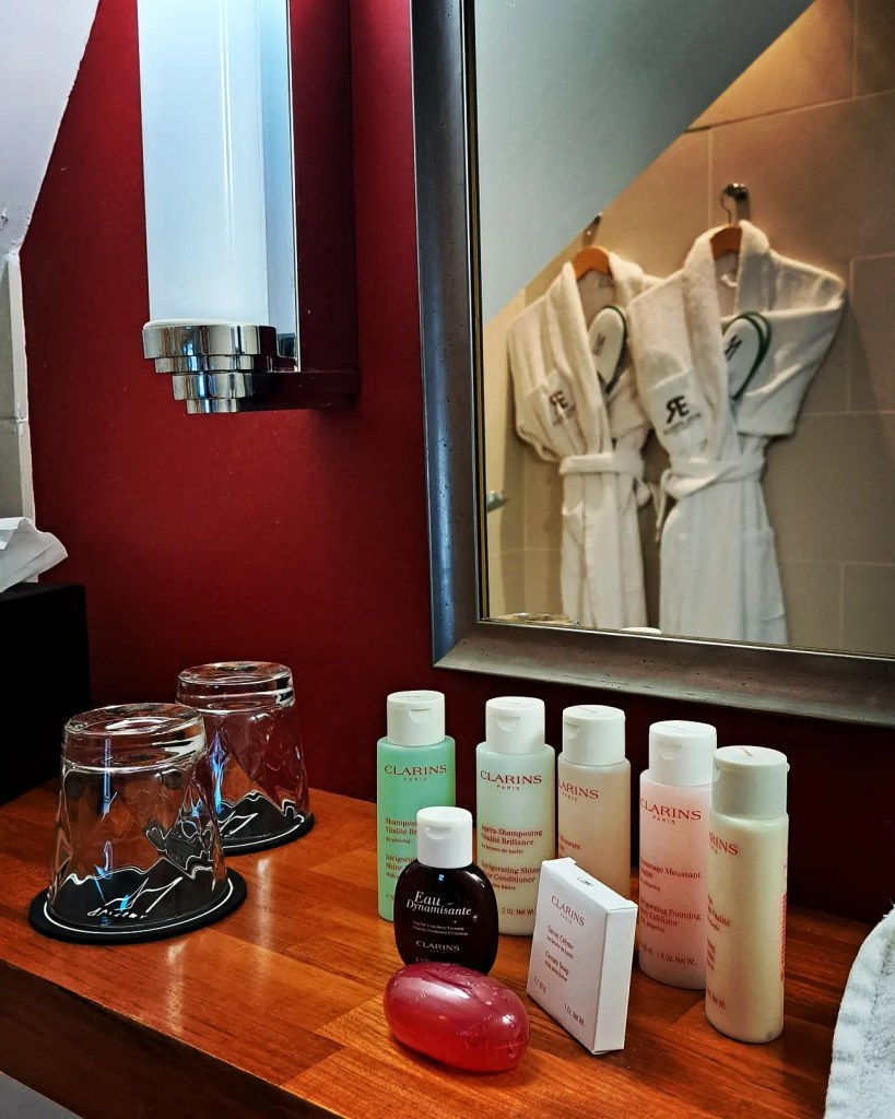Pour ma part, ma suite était absolument parfaite avec de nombreux équipements pour agrémenter le séjour, des machines à café et thés aux produits Clarins en nombre dans la salle de bain tout aussi cosy que le reste des lieux, avec une magnifique vue sur Dinard, le casino et la plage.