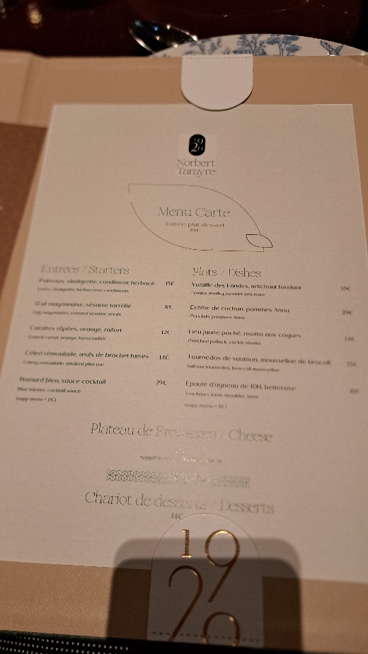 Direction donc l’établissement de l’avenue George V, situé au-dessus de l’hôtel éponyme, pour le restaurant qui a ouvert le 12 octobre 2023 avec pour chef Norbert Tarayre dont l’objectif est de « faire revivre les années folles parisiennes et rendre la haute cuisine abordable à tous » et de « mettre en avant les incontournables de la bistronomie française. »