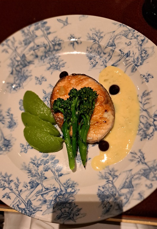 Le tournedos de saumon, mousseline de brocolis était vraiment délicieux et fondant. Mais le grand atout des lieux, outre son talent, est la jovialité du chef, sa bonne humeur communicative, son énergie débordante, sa passion et son attention à chaque client qui procurent une âme chaleureuse aux lieux. Le moins qu’on puisse dire est qu’il ne ménage pas ses efforts et reste invariablement souriant et attentif à chacun et assure le spectacle malgré la pression que l’on imagine en « coulisses ».